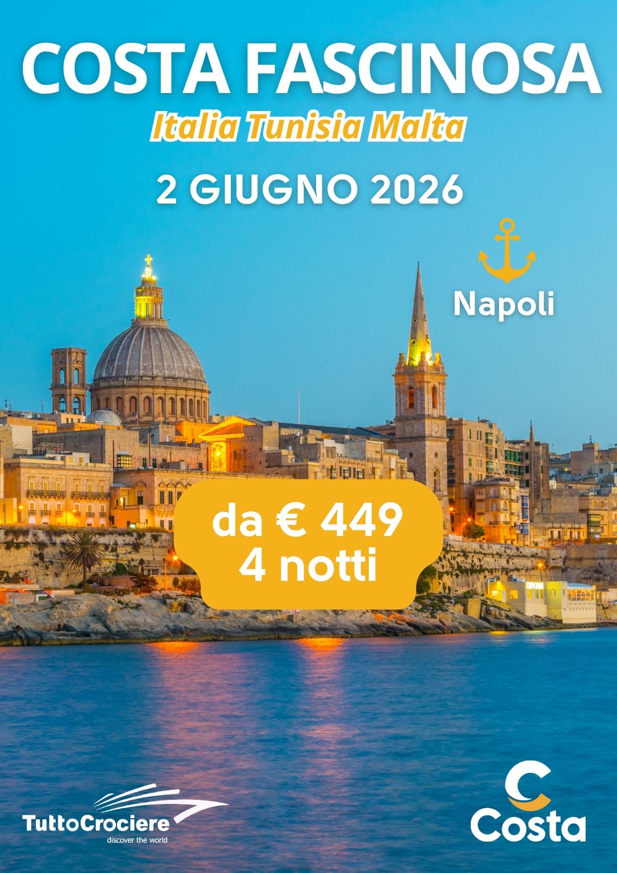 Non lasciarti sfuggire le tariffe più vantaggiose del web. Abbiamo selezionato per te le offerte più esclusive di MSC e Costa Crociere: prenota ora su TuttoCrociere e assicurati sconti riservati che non troverai altrove.
